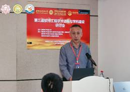 10月9日的开幕式由西安电子科技大学计算机科学与技术学院(国家示范性软件学院)副院长、西电青岛计算技术研究院执行院长沈玉龙教授主持。西安电子科技大学副校长王泉教授首先致辞。王校长感谢各位专家与代表参加本次研讨会,介绍了包括软件工程在内的西电电子信息类学科良好的发展情况,感谢各位专家与同行对于西电软件工程学科建设的关心与支持,希望各位专家借助这次会议就软件工程领域热点问题深入交流,并继续为西电软件工程学科的发展献言献策。青岛市城阳区区委书记王波代表青岛市城阳区对会议的召开表示热烈祝贺,王波书记简要介绍了青岛市城阳区的教育、产业与科技发展情况,表示城阳区将全力支持西电青岛计算技术研究院的发展,希望研究院能够成为电子与信息技术领域人才培养、科技创新与成果转化的高地,把学校的人才、科技优势转化为产业、经济优势,助力区域创新和经济转型升级。研讨会发起人、西安电子科技大学软件工程学科负责人、计算机科学与技术学院(国家示范性软件学院)党委书记、西安市智能软件工程重点实验室主任李青山教授致辞。李青山介绍了西电软件工程学科的发展简况,回顾了前两届研讨会的会议历程,简要介绍了本次会议的情况,并从三个方面强调了本次会议的特点。一是线上线下相结合,西电青岛计算技术研究院100多名师生线下参加,西电本部、杭州研究院、广州研究院的计算机与软件相关专业师生,高校与研究院所相关领域师生主要通过线上方式参与会议。二是会议在西电青岛计算技术研究院举行,将学科建设与研究生产教融合培养结合起来。三是本届会议与2021 ccf中国软件大会密切相关,西电软件工程学科作为大会承办方,与专委会一起也借助本次会议对大会的筹备情况进行商定。李青山最后希望通过本次研讨会可以加强不同学校间软件工程相关领域师生的学术交流,形成一个良好的软件工程学科互动平台。