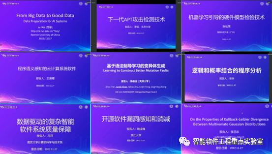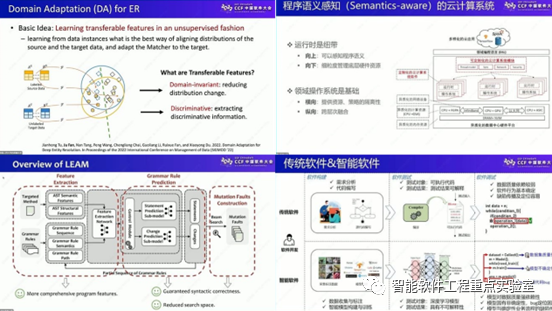 首场报告题为“面向人工智能的数据准备技术:机遇与挑战”,由中国人民大学范举老师带来。报告探讨了基于人工人工智能的数据库技术(ai4db),进而介绍用于人在回路的数据准备方法,最后介绍课题组关于大数据管理与分析的新思路。接着,北京大学李锭老师以“下一代apt攻击检测系统”为题,介绍了其课题组研制的系统运行日志监控技术,以及在系统安全领域的应用,并且被nec公司应用到其商业化的安全产品中,最后介绍结合这些研究成果讨论了未来apt攻击的模式已经检测方法。香港科技大学(广州)张弘策老师以“机器学习引导的硬件模型检验技术”为题,介绍了硬件领域内的形式化方法的现状,然后介绍课题组围绕硬件领域内的形式化方法设计开发的开发了模型检测工具pono与指令集建模与验证工具ilang,最后指出机器学习在硬件领域内的形式化方法的应用价值。