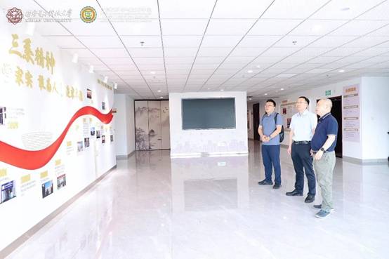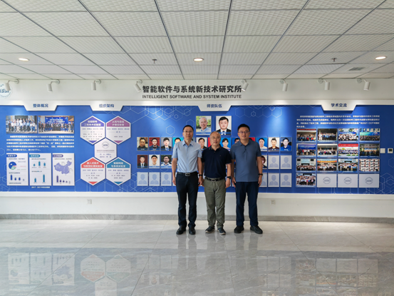 首先,陈海波教授、武延军研究员在李青山教授陪同下,参观了计算机科学与技术学院、西安市智能软件工程重点实验室在新启用的网络安全创新研究大楼中的文化墙建设。李青山教授讲解了学院的发展历程,介绍了学院在专业建设、学科建设、科学研究、党建创新、人才培养等方面取得的成果。