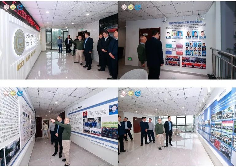 交流座谈开始前,李青山书记由二楼学院形象墙开始,向胡林平所长一行详细介绍了学院的发展历程和现有组织架构,并共同参观了解了西安市智能软件工程重点实验室的建设情况与现场环境,以及重点实验室在自主软件研发、代码分析与治理、软件智能运维等方向的科研成果。
