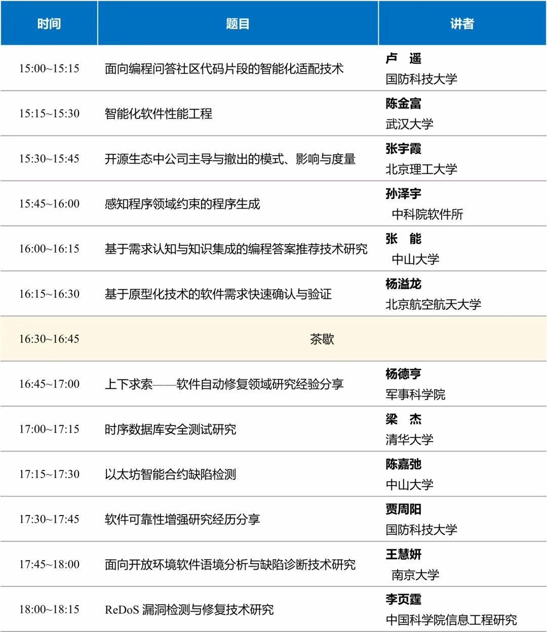 论坛主席: 陈明帅(浙江大学)、田聪(西安电子科技大学)、熊英飞(北京大学)