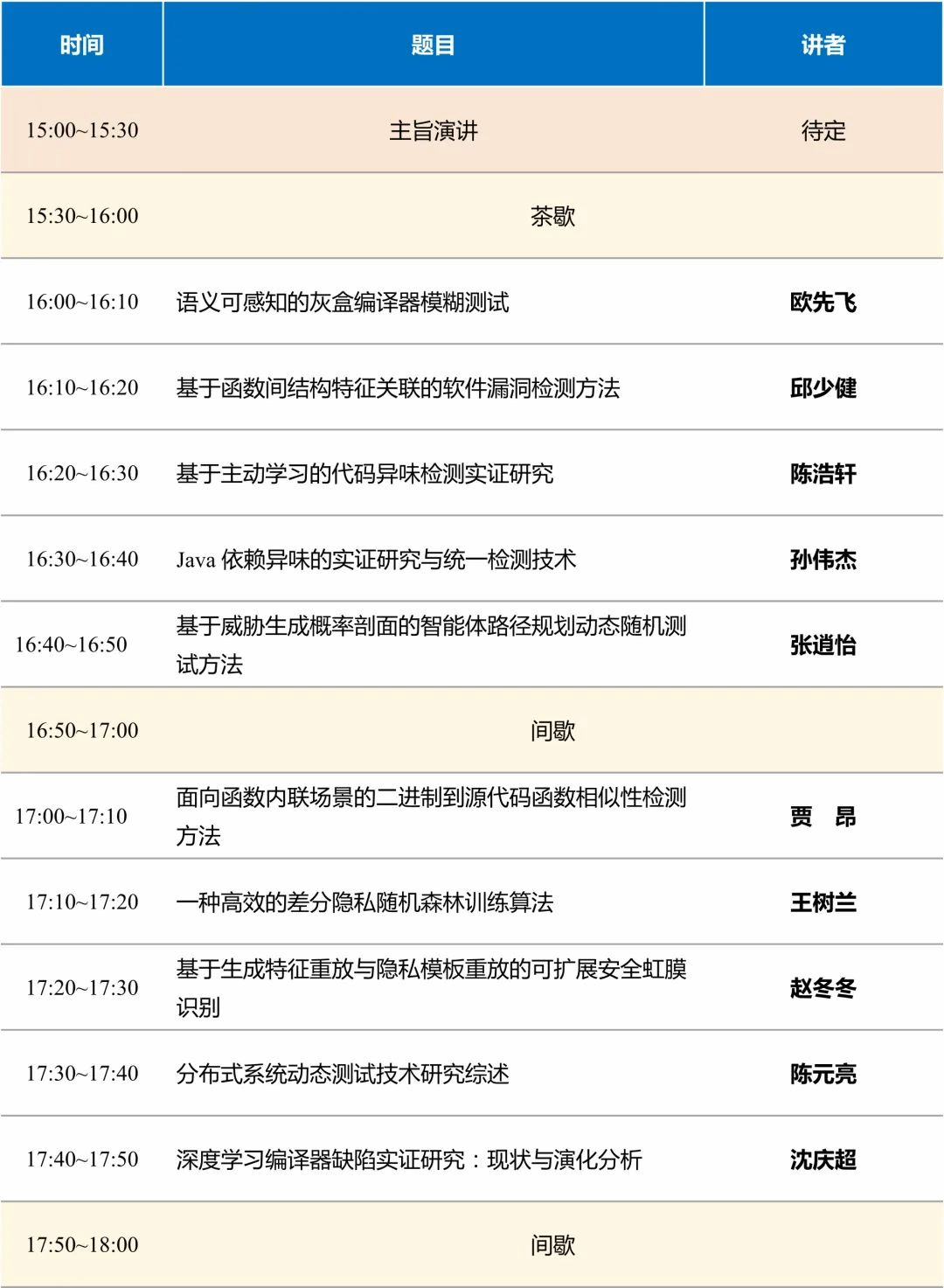 论坛主席: 武延军(中国科学院软件研究所)、谢涛(北京大学)、侯锐(中国科学院信息工程研究所)、张科(中国科学院计算技术研究所)、宋威(中国科学院信息工程研究所)、邢明杰(中国科学院软件研究所)