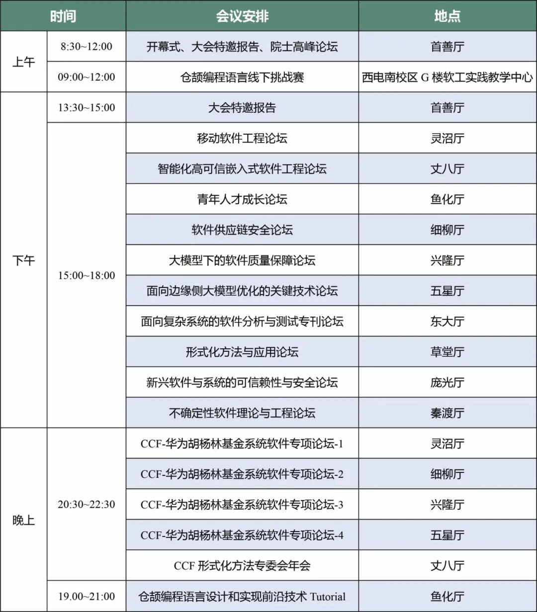 2024 ccf中国软件大会(2024 ccf chinasoft)将于2024年11月15日至17日在陕西省西安高新国际会议中心召开。大会由中国计算机学会(ccf)主办,ccf软件工程专委会、系统软件专委会、形式化方法专委会、西安电子科技大学承办,西安电子科技大学计算机科学与技术学院(国家示范性软件学院)具体落实,西安市智能软件工程重点实验室负责实施,得到西安高新区管委会的大力支持。同时,大会由西安交通大学、西北工业大学、西北农林科技大学、陕西师范大学、长安大学、西北大学、西安理工大学、西安建筑科技大学、西安邮电大学、中国航空工业集团公司西安航空计算技术研究所、陕西省计算机学会协办,由华为技术有限公司、汇丰科技中国、蚂蚁集团、百度集团、知存科技有限公司、北京轩宇信息技术有限公司、荣耀集团、望安科技有限公司等作为赞助商。本届大会的主题为“智能软件创新赋能新质生产力发展”。