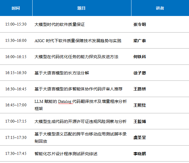 大模型下的软件质量保障专刊论坛(论坛编号:s1)