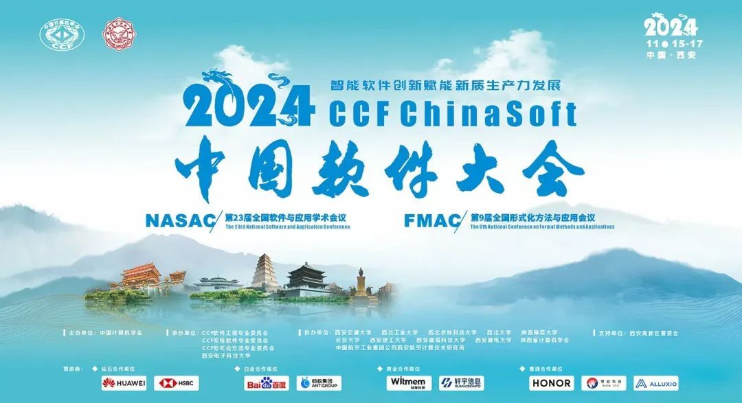 2024 ccf中国软件大会(2024 ccf chinasoft)将于2024年11月15日至17日在陕西省西安高新国际会议中心召开。大会由中国计算机学会(ccf)主办,ccf软件工程专委会、系统软件专委会、形式化方法专委会、西安电子科技大学承办,西安电子科技大学计算机科学与技术学院(国家示范性软件学院)具体落实,西安市智能软件工程重点实验室负责实施,得到西安高新区管委会的大力支持。同时,大会由西安交通大学、西北工业大学、西北农林科技大学、陕西师范大学、长安大学、西北大学、西安理工大学、西安建筑科技大学、西安邮电大学、中国航空工业集团公司西安航空计算技术研究所、陕西省计算机学会协办,由华为技术有限公司、汇丰科技中国、蚂蚁集团、百度集团、知存科技有限公司、北京轩宇信息技术有限公司、荣耀集团、望安科技有限公司等作为赞助商。本届大会的主题为“智能软件创新赋能新质生产力发展”。
